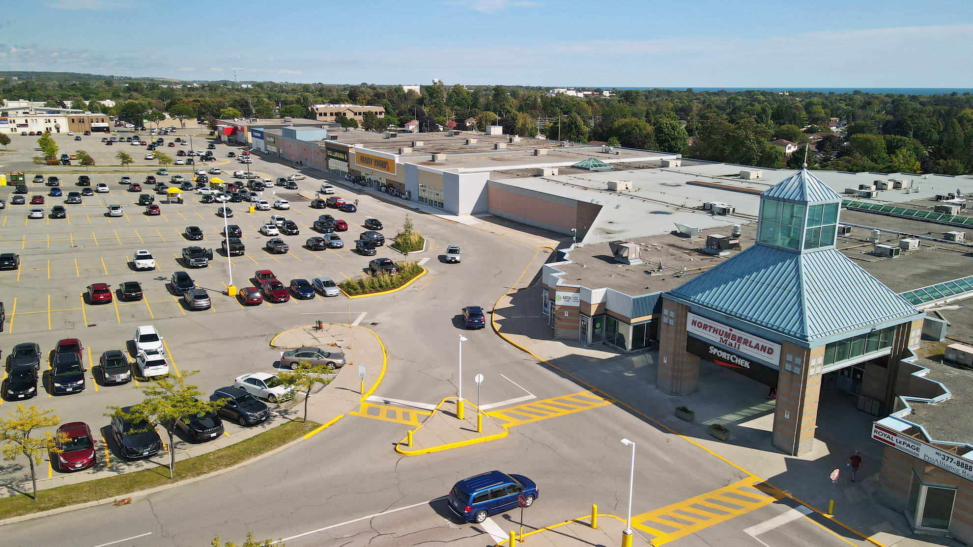 Boasting a prime location with direct visibility to Elgin Street W., Northumberland Mall in Cobourg is home to 375,000 SF of retail including anchor tenants such as Metro, Hart Stores, LCBO, Giant Tiger, Dollarama, and Sportchek. More recently, construction was completed on a brand-new, free-standing pad in which Starbucks, Firehouse Subs, Easy Financial, Booster Juice, Bar Burrito, and Inspired Cannabis are now open for business.