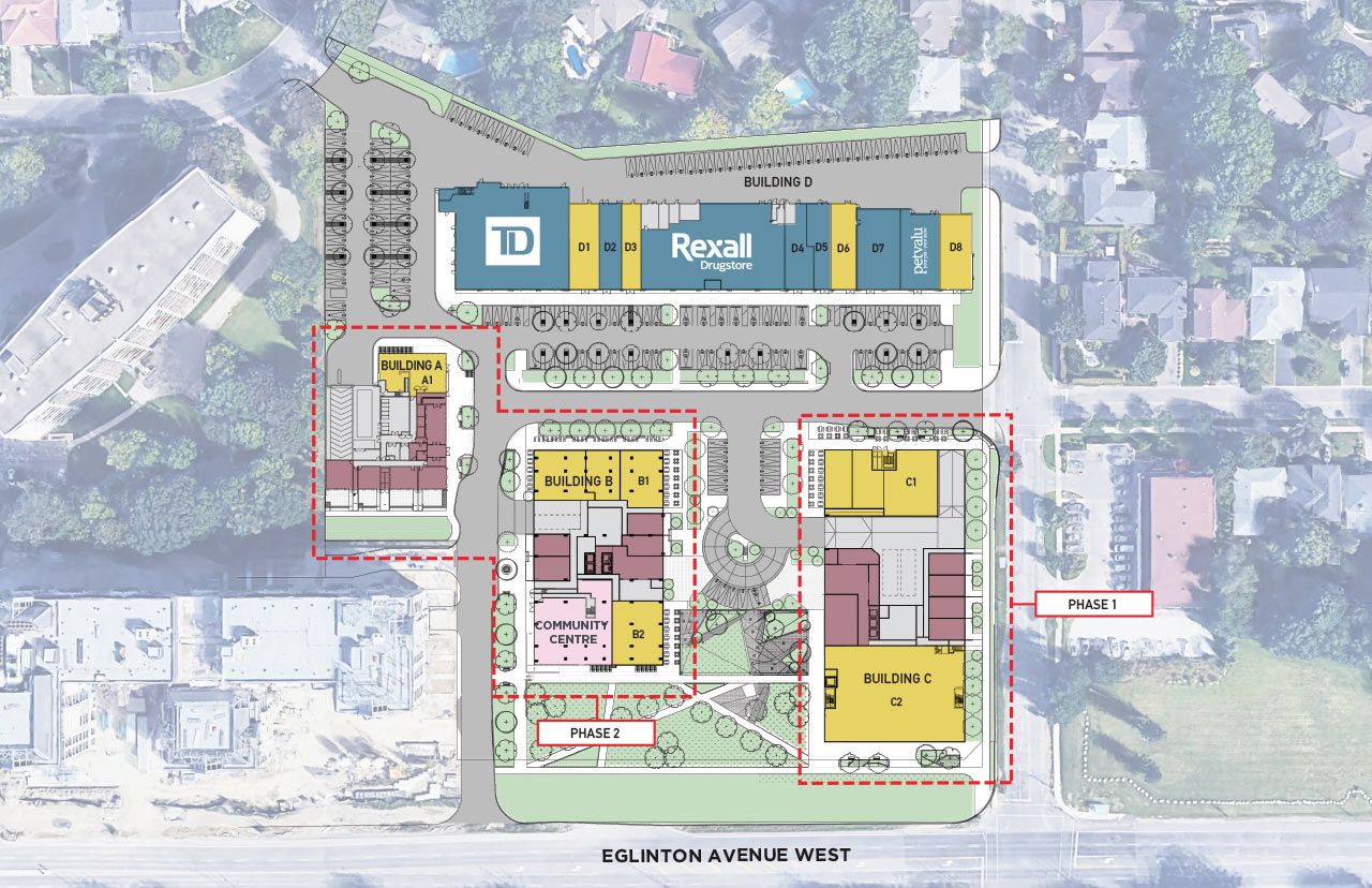 Richview Square is currently home to a 43,200 SF retail strip with well-established tenants such as TD Canada Trust, Pet Valu, and Rexall Pharma Plus. The existing retail is slated to be renovated and additional lands are to be developed for future mixed-use buildings comprised of three new towers with 38,300 SF of retail including a grocery anchor and 1,030 residential units. This will not only revitalize and add intensification but also build upon the legacy of the shopping centre as the heartbeat of the community. Possession for Phase 1 retail is estimated for 2026.
