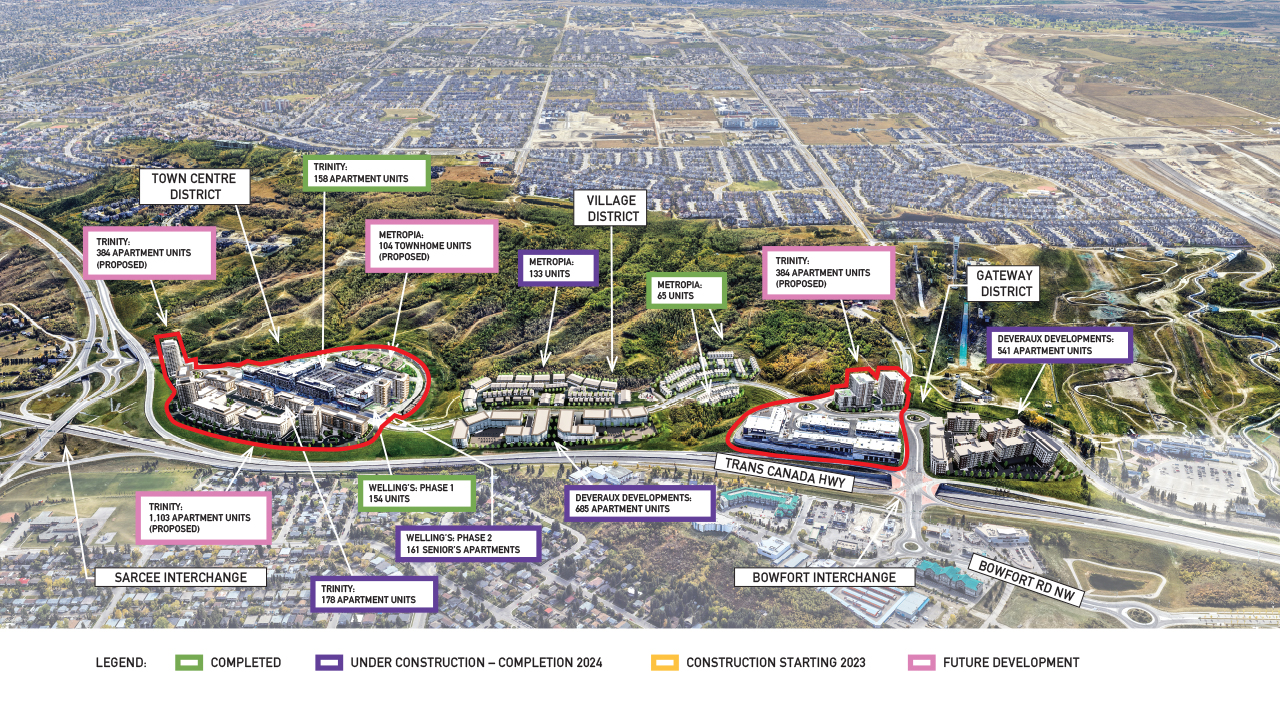 Located along the historic Trans-Canada Highway with access to Sarcee Trail and Bowfort Road, Trinity Hills in Calgary serves as the Western gateway between this major city and the Rocky Mountains. Trinity Hills will accommodate a diverse community of residents with almost 4,000 residential units planned across luxury apartments, modern townhomes, and seniors housing. Owing to the exceptional demand for Trinity’s existing rental units, a further 186 units are anticipated to commence construction in Q2 2023.