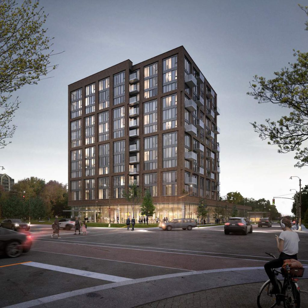 The existing plaza building will be partially retained and renovated, with its southwesterly wing being removed, an 8.6 metre-wide addition to be made to the east side of the building, and enhancements planned to the building’s facade.